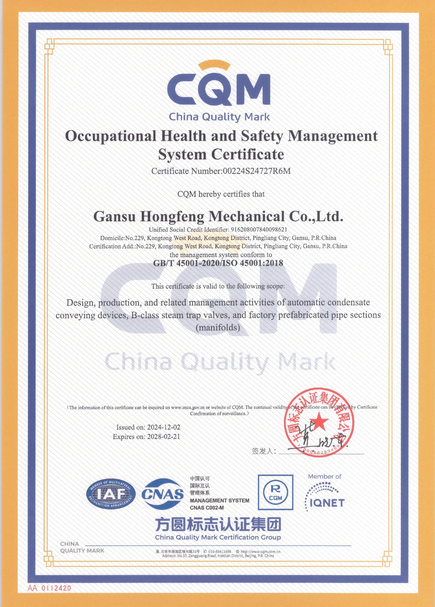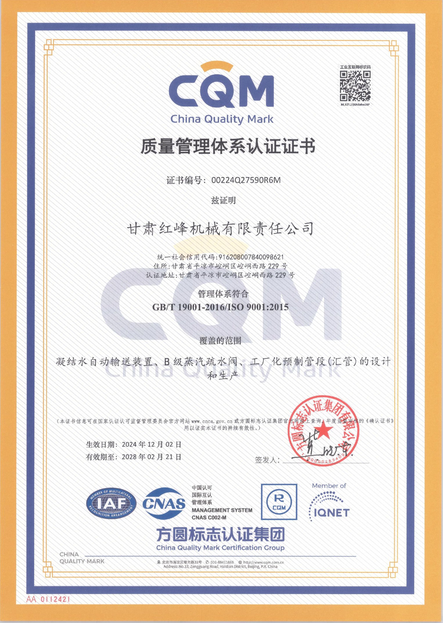 公司基于蒸汽系統對泵閥設備可靠性、穩定性、耐用性、安全性的嚴格要求,建立了包括采購管理、生產控制、性能驗證、質量檢驗、售后服務等在內的一整套質量保證和控制體系,全心全意為優質產品保駕護航。