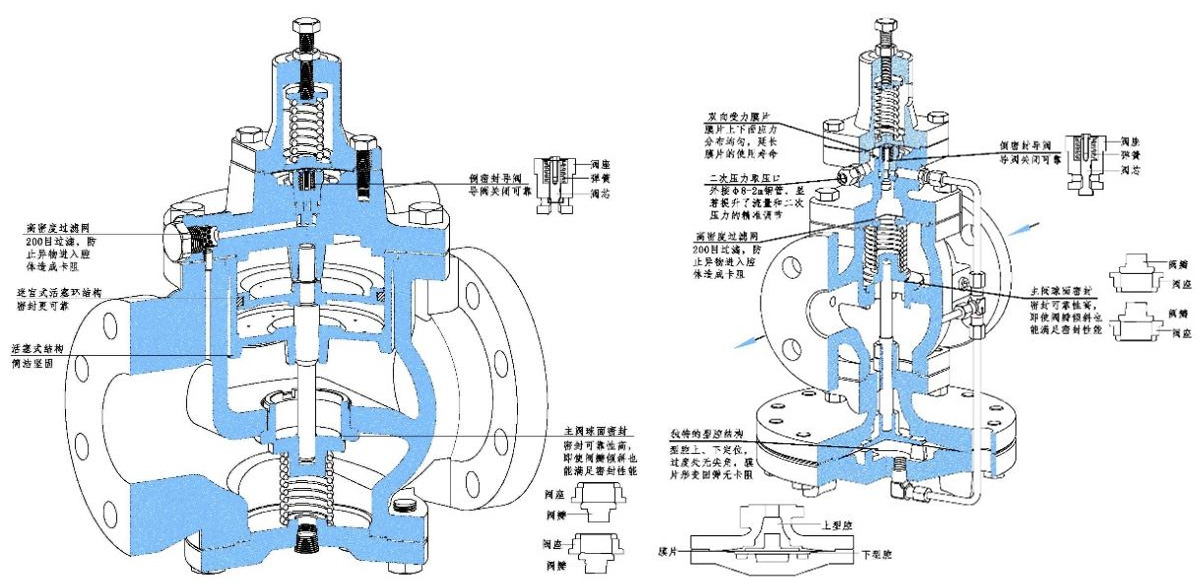 自力型減壓閥是通過自動調節,將進口壓力減至某一需要的出口壓力,并依靠介質本身的能量,使出口壓力保持穩定的閥門。介質通過減壓閥雖有一定的壓力損失,但由于減少了介質的浪費并使系統流量分布合理,從而改善了系統布局與工況,因此屬于節能產品。介質為蒸汽的場合,宜選用先導活塞式減壓閥或先導膜片式減壓閥。為了操作、調整和維修的方便,減壓閥一般應安裝在水平管道上。