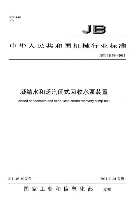 凝結水和乏汽閉式回收水泵裝置 試驗方法