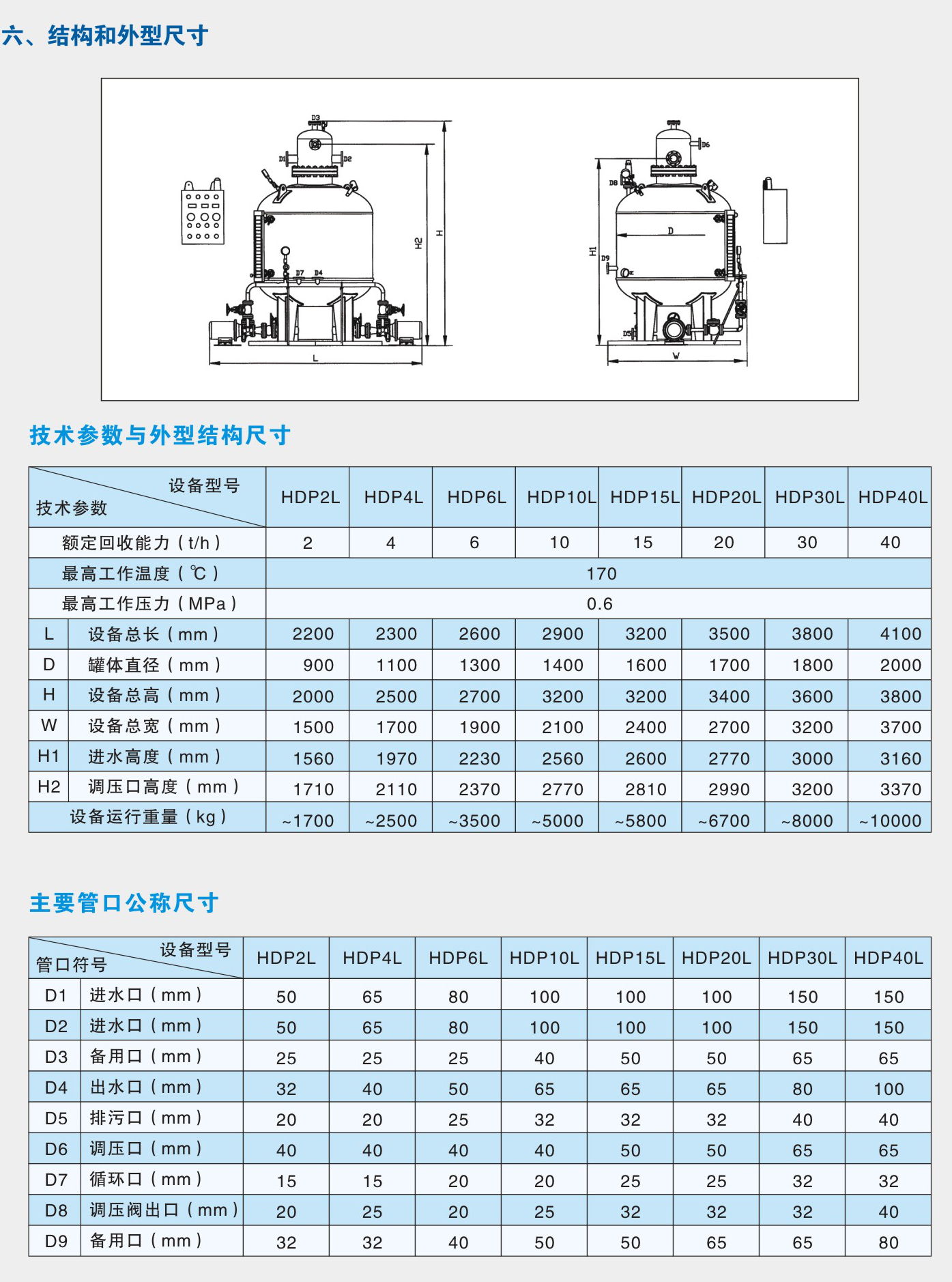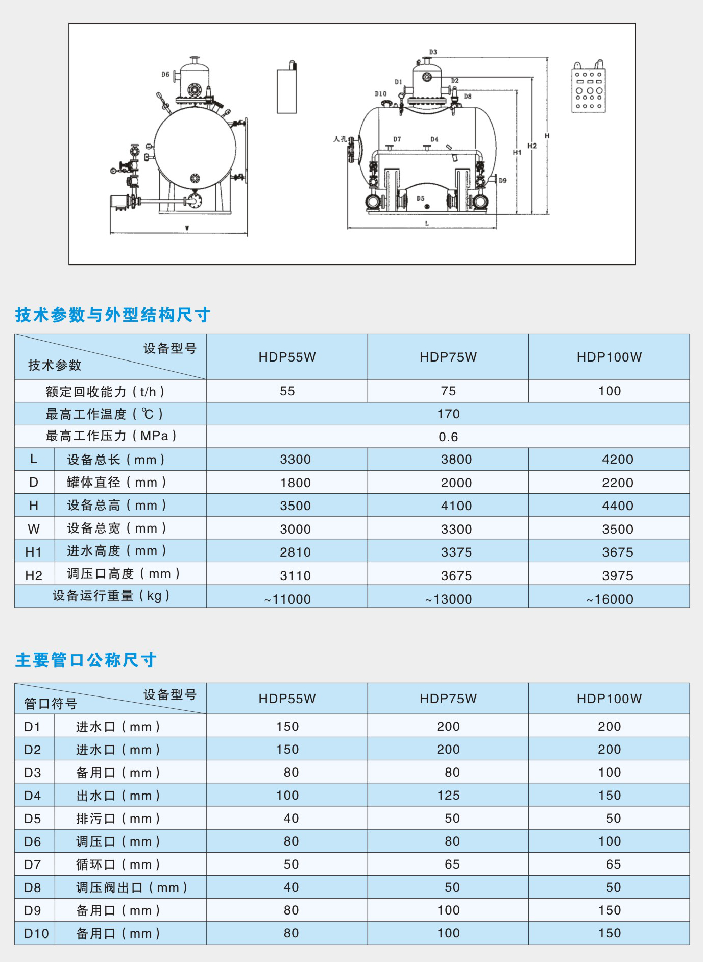 HDP凝結水回收裝置(立式、臥式)技術參數與外形尺寸速查表